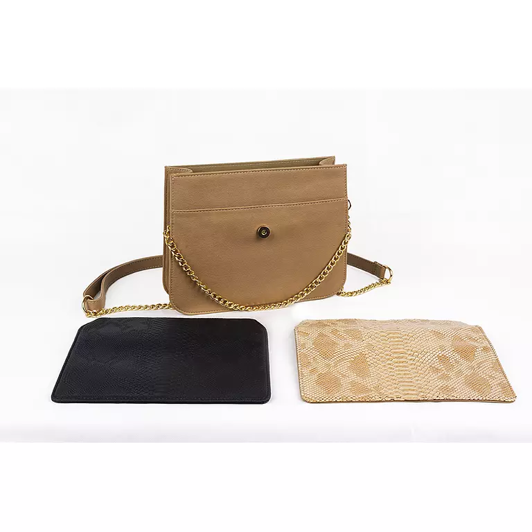 Beige Cross Bag with Changeable flap black