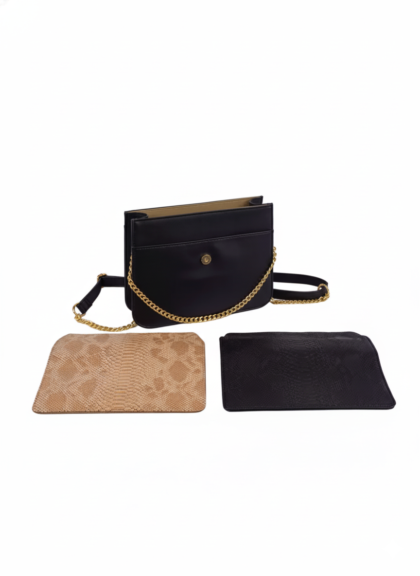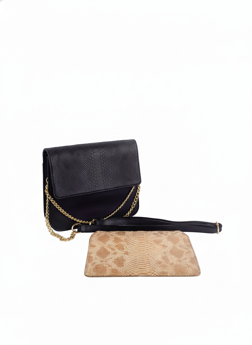 Medium Black Cross Bag- One Black Flap